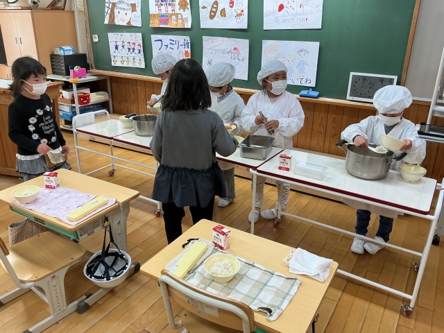 通学団会を行い、下校では1年生を伴って初めて一緒に下校しました。上級生が下級生の様子をよく見て、歩くスピードなどを調節して、安全に登校しましょう。また、本日は今年度の給食開始日でした。1年生もみんなで協力しながら準備を進めていました。