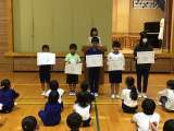 運動会の予行練習を行いました。途中から雨模様の天気のため、閉会式の練習は体育館...