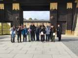 2日目の朝は、少し寒いですが、みんな元気です。 これから北野天満宮へ向かいます。