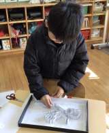 3年生が図画工作科で「光と色のファンタジー」を作りました。 下絵に合わせて厚紙を...
