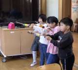1・2年生が英語で乗り物の言い方に慣れ親しみました。 まず、車や飛行機、船、電車...