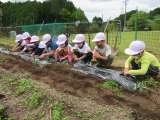 たくさん収穫できるといいな。(5年生、田植え体験)