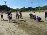 気温が上昇する前の1時間目に「しっぽとり」の練習を行いました。 紅組、白組に分...