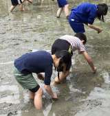 3年生から6年生で、田植えをしました。地域講師の方に苗の持ち方や植え方を教えてい...