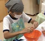 6年生が家庭科の学習で、卵焼き作りに挑戦しました。手際よく卵を割りよく混ぜ、巻き...