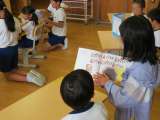 5時間目に、4年生が1年生の教室へ行き、読み聞かせを行いました。 4年生は、ペ...