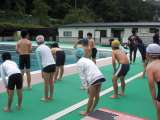 第1回目の水泳学習です。全校児童でバスに乗り、足助プールまで行きました。準備運動...