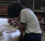 5年生が図工「糸のこ すいすい」の作品作りに取り組んでいます。 木の板に様々な動...