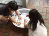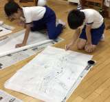 6年生が図画工作科で「墨と水から広がる世界」の学習をしました。割り箸に墨汁をつけ...