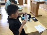 1年生が図画工作科の学習で七夕飾りを作りました。友達と教え合いながら、折り紙に丁...