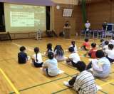 夏休み前集会を行いました。はじめに、2年生と4年生の子の意見発表を聞きました。次...