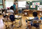 3年生が外国語活動で”I like blue.すきなものをつたえよう”の学習をし...