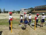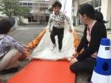 3年生と4年生は、3階の教室から救助袋を使って避難する体験をしました。