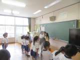 最後は、みんなで1年生を見送りました。手を振ったり、ハイタッチをしたりしながら、...