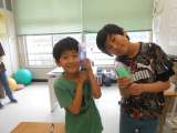 自立活動の様子です。 2組は、水と油を混ぜた液体入ったラメなどの動きを楽しむオイ...
