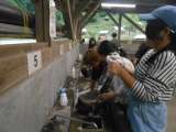 下の写真は、所員の方に「鍋を洗うたわしを貸してくれますか」と聞いている場面です。...