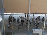 新校舎ができたことで、教室の下の日陰の空間で体育の時間の給水や振り返りの記入を行...