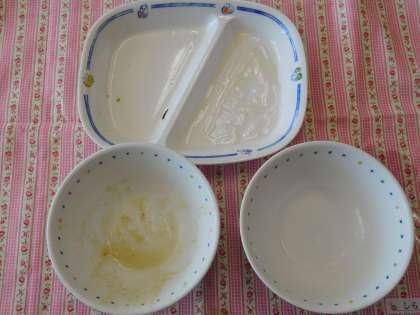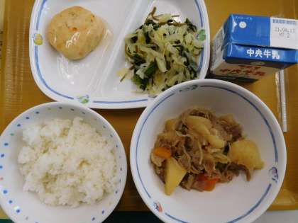 1年生は、しばらく給食を食べずに下校する学校もあるのですが、東広瀬小学校の1年生は、給食だってもりもり食べています。この完食したお皿を見てください。ちなみに、今日のメニューは、キャベツの昆布和え・とうふしんじょのあんかけ・肉じゃがでした。