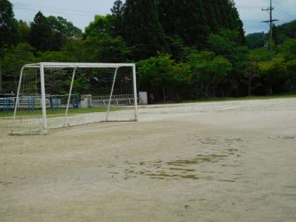 この日の運動場は、水たまりがいくつもできていました。