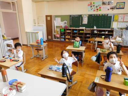 2・3・4組では、みんなでお弁当を食べました。
