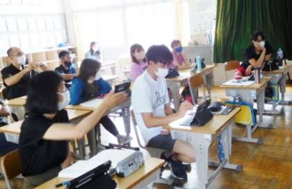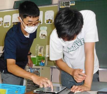 今年度から、本格的にタブレットを使っての教育活動が始まっています。