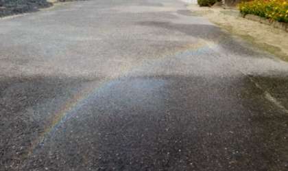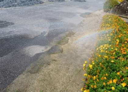 今日は、天気も良く、花に水をかけているときらきらと虹ができました。