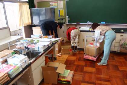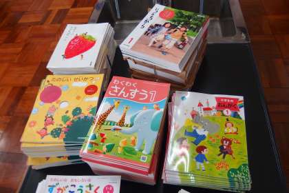 教科書が届きました。 学年ごとに仕分けをしているところです。