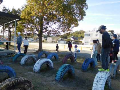 「おひさま」では、ちょうど外で遊んでいる時間でした。