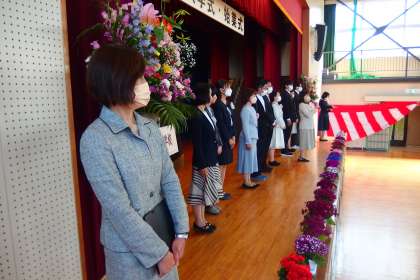 式の後、本校職員の紹介をしました。 今年1年間、よろしくお願いします。