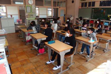 今朝のわかばタイムの様子です。 写真は、上から6年生、5年生、4年生です。