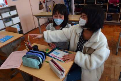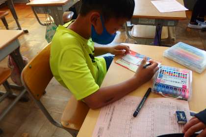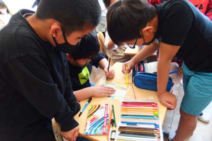 学級活動で掲示物を作成しています。