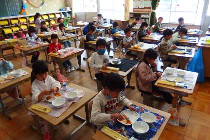 4月8日の東広瀬小学校(33) 公開日 2022/04/08 更新日 2022/04/08 活動の様子 1年生の会食の様子です。 きちんと黙食できています。 下の写真は、片付けのサポートをしてくれている6年生です。