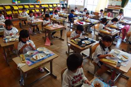 普段はにぎやかな1年生の教室ですが、会食のときは黙食を守ることを覚えてくれて、静かに食べることができつつあります。
