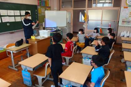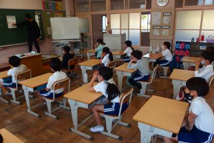 朝の会の様子です。 上から、3年生、2年生、1年生の教室です。