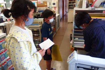 新入生歓迎会の準備に使うために、職員室に画用紙を取りに来てくれました。
