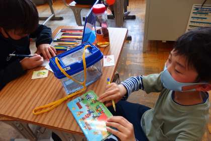 捕まえた生き物を、しっかりと観察をして、きれいにスケッチしていました。