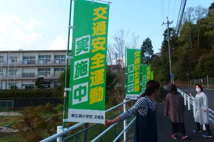 4月13日の東広瀬小学校(30) 公開日 2022/04/13 更新日 2022/04/13 活動の様子 春の全国交通安全市民運動期間中です。 通学路に安全啓発ののぼりを設置し忘れていたので、急いで立てに行きました。 無事故の1年間にしていけるように安全教育を進めてまいります。 地域や家庭での見守り、声かけをよろしくお願いします。