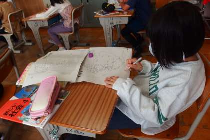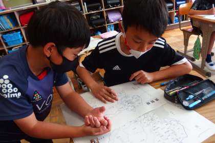 白地図を上手に活用しながら、愛知県の特徴を学んでいました。