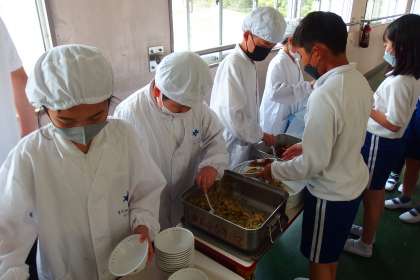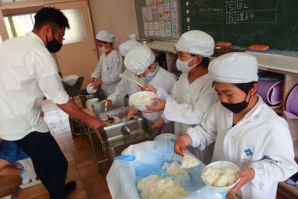 給食の配膳の様子です。
