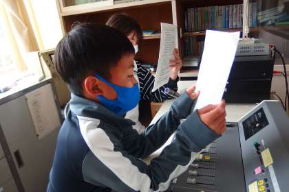 給食献立一口メモを紹介してくれた保健給食委員の二人です。