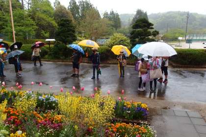 週明けは雨降りのスタートとなりました。 写真は今朝の登校の様子です。