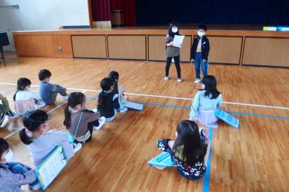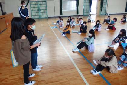 2年生が1年生に説明をしているところです。
