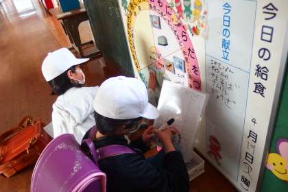 保健給食委員が献立情報を貼ってくれています。
