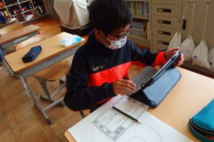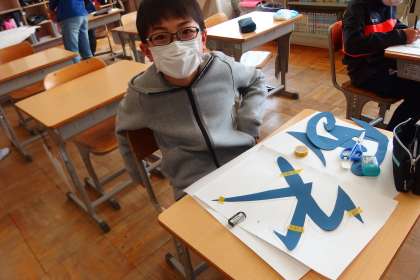 教室の掲示物を作っている6年生です。