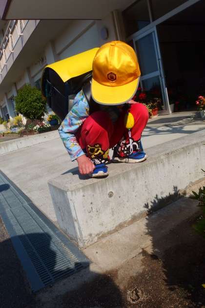 きのうに続き、今朝もアリの観察を熱心にしています。