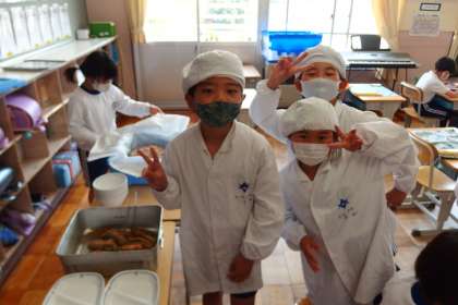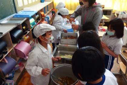 給食の配膳の様子です。