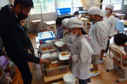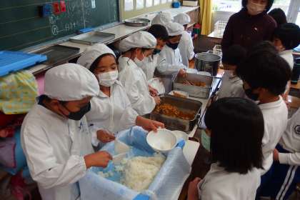 給食の配膳の様子です。