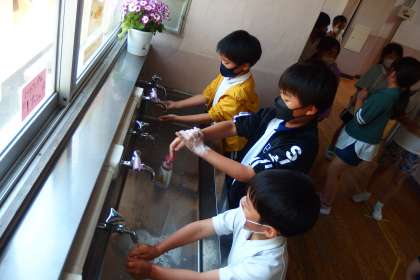 4月25日の東広瀬小学校(18) 公開日 2022/04/25 更新日 2022/04/25 活動の様子 新型コロナ感染症の豊田市内の感染者数は、なかなか減少していかない現状があります。 学校で続けてきた感染症対策を、今後も愚直に続けていきます。 写真は、給食の前にていねいに手洗いをする低学年の児童です。