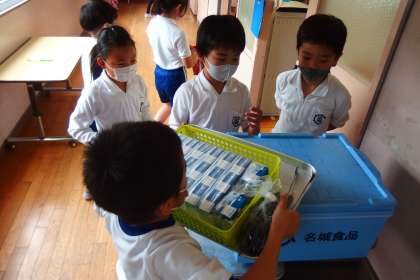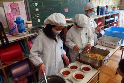 給食の配膳の様子です。