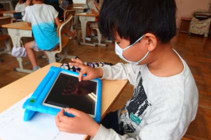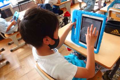 タブレットパソコンを使って、調べ学習をしています。